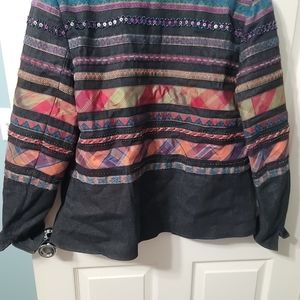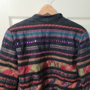 Coldwater Creek Denim Beaded Deco Open-Face Jacket Women's 14 EUC