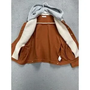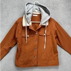 Paper Crane Jacket Womens Medium Rust Brown Sherpa Collared Hooded Denim Coat