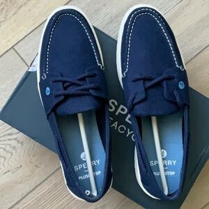 NIB Sperry Sea Cycled Cruise Plush Twill Navy Slip On Sneakers Size 10