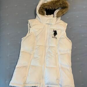 U.S. Polo Assn. Puffer Vest Women’s Medium White with Faux Fur Trim. In great condition. No stains.
