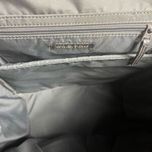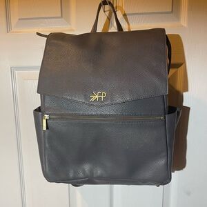 Freshly Picked Diaper Bag convertible backpack Synthetic Gray brass hardwares..front zipper compartment back pocket and two side pockets top zipper with flop snap closure the inside lining has a side padded zipper,side pockets an insulated bottle pocket and three side pockets. Pre owned in good used condition signs of wears on the bottom four corners have small peelings. See all pictures any questions please message..
