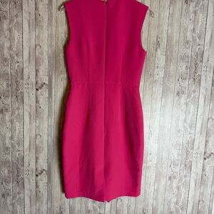 Size 6 Ava & Aiden sleeveless V-neck sheath dress. Bright pink/fuchsia color with fitted silhouette and asymmetrical front drape detail at the waist. Back zipper closure and knee-length cut.