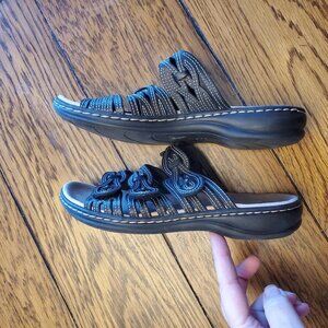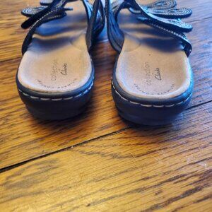 Women's Clarks Ultimate Comfort Leather Sandals. Adjustable straps, Size 6, Black.