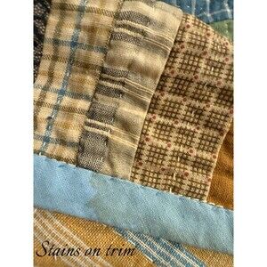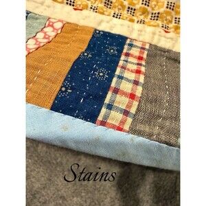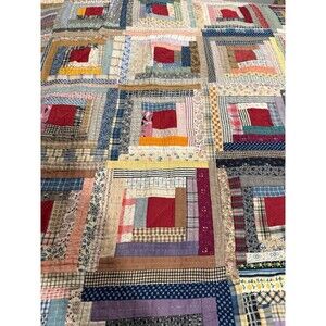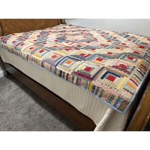 Antique Log Cabin Quilt Reversible Twin/full Blue Trim Floral Back 81” X 64”