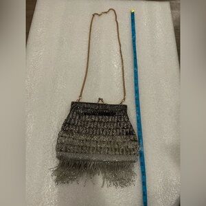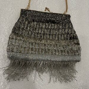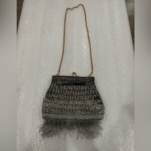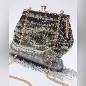Zara Multi Color Heavily Beaded Fringe Evening Shoulder Bag Hand Pouch Pouch