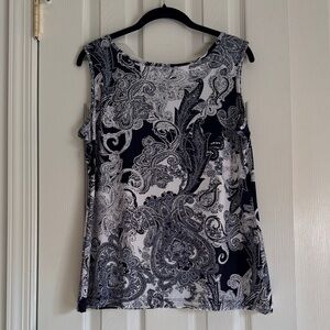 Chic and versatile, this Iman set features a sleeveless scoop-neck top with matching wide-leg pants. The striking navy and white paisley print makes it perfect for both casual outings and dressier occasions. Soft, lightweight fabric offers comfort with a flattering drape. Wear together as a polished set or mix and match with other wardrobe staples.