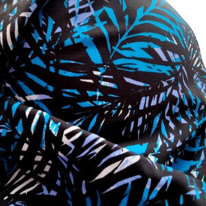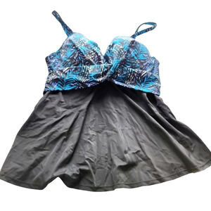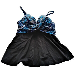 Swim Top with padding and adjustable straps. Cool blue and black with a touch of white. V neck babydoll design made to fit and flatter.