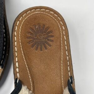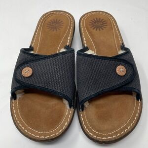 UGG Australia Leather Slides Sheepskin Lined Comfort Sandals Navy Blue Size 7