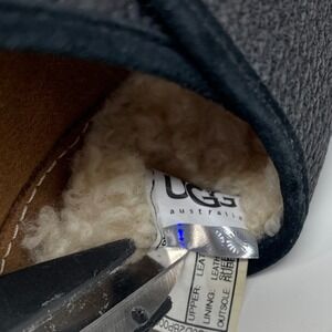 Keywords: UGG Australia, leather slides, sheepskin lined, comfort sandals, navy blue sandals, women's sandals, size 7, casual slides, summer footwear, UGG slides, leather sandals, comfortable shoes, slip on sandals