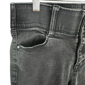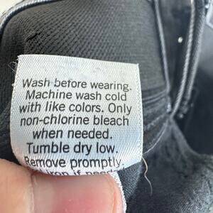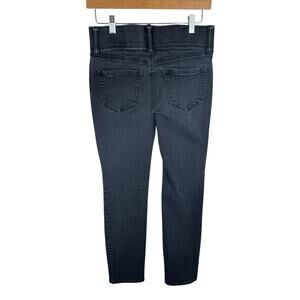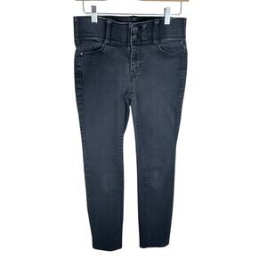 Excellent preowned condition. Black slim straight mid rise jeans. Zipper/double button closure. 5-pocket design. Thick elastic band inside waistband. Cotton/polyester/rayon/spandex material. Approx. measurements: Waist 30", inseam 30", rise 9". Size 4.
