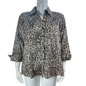 Harve Benard Leopard Print Button Front Top 2X
