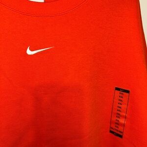 This is a NWT Nike Vibrant Coral Colored Women’s Oversize Cropped Crewneck Sweatshirt that is a Sz XXL. The Nike logo is embroidered in white in center of shirt. The way this sweatshirt is made it is difficult to get a proper pit to pit measurement but the best I can get is 30” across, 24” long, and has a 3.5” waistband.