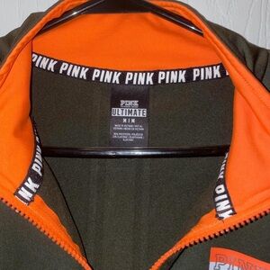 PINK Victoria's Secret Ultimate Olive Pullover with Orange Trim