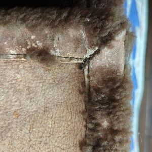 Beautiful vintage sheepskin coat. Some wear and tear that is expected for its age. (1970's?) The seams in the armpits have ripped open and at some point someone tried to repair one. I wore this for a winter or two and it is so incredibly warm🌡️ that the armpits didnt matter. I just made a point of not going out in a blizzard and waving my arms! 🤣 Button holes are in excellent condition. One button at the neck is missing. Again, its so warm that when I wore it I never needed to do up that button and so never even noticed it was missing until today. Price reflects condition. Unisex/men/women