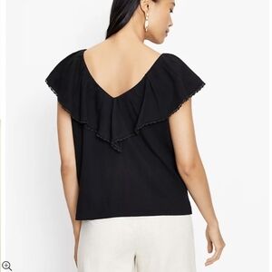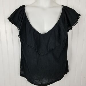 LOFT Ruffle V Back Shell Black Gauze Flutter Sleeve Top Boho Peasant NEW Medium