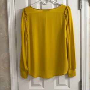 LOFT Golden Yellow Longsleeve V-neck, Ruffle at Shoulder, Blouse. EUC