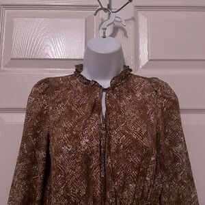 Details: snake printed pattern, lined dress, light weight breathable, long bubble sleeve, v neck, midi length, cinched waist, layered skirt, spring summer wear