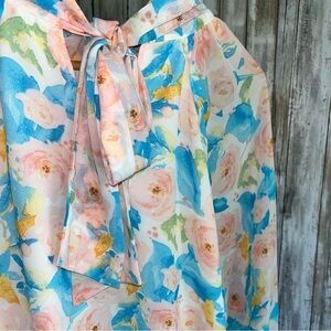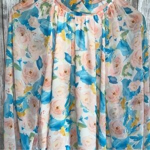 Embrace elegance with this floral print women's top. Featuring a blend of soft pinks and blues, this top is perfect for any occasion.