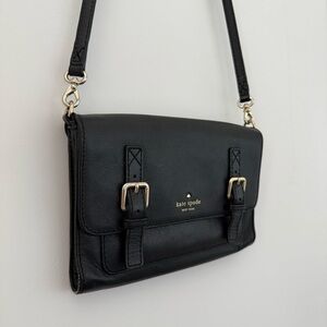 Kate Spade black leather Allen Street Neil crossbody messenger clutch bag