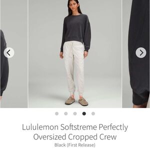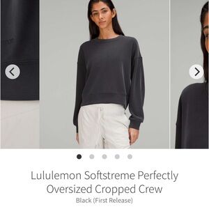 New with tags lululemon crewneck. Size 10. Black. Style is called perfectly oversized. Cropped. Crewneck. Relaxed fit. Waist length. Softstreme material. 4 way stretch quick drying. Released 1/23