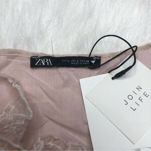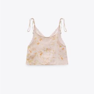 This Zara cami crop top in size L is perfect for those who want to stand out with their fashion choices. The top features a beautiful pink tie-dye design complemented with embroidered accents, making it an elegant and fashionable piece. The sleeveless top has a V-neckline, spaghetti straps and adjustable straps to provide a perfect fit.
