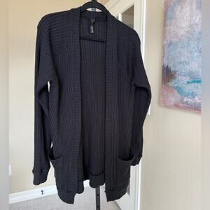 Bobi Los Angeles Pocket Cardigan Sweater Black Cable Knit Open Front Size M Revolve