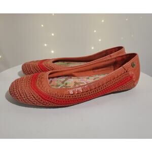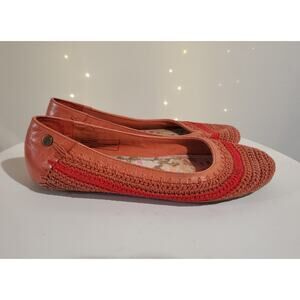 The Sak Crochet Leather Boho Ballet Flats Size 6.5 Coral Pink Cottagecore Fairy