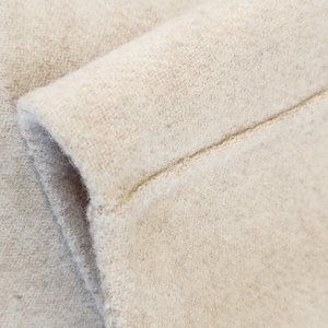 This is the original version that has a whopping 38% cashmere (compared to the ones sold today that only have 10%). The rest is virgin wool. This coat is in immaculate unworn condition. The fabric is melange, which means it's a mix of fibers that are cross dyed to create a heathered effect. It's a natural fabric, and the color and texture are not perfectly uniform--this is not a flaw in the garment. The coat has been thoroughly inspected and is free of scents, human/pet hair, stains, holes, or moth damage. As far as I can tell, it's flawless. Please enlarge each photo and inspect it closely, because the photos are part of the description.
