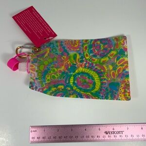 NWT Vibrant drinkware sleeve by Lilly Pulitzer. Features a lively pattern with pink, green, and blue hues. 13.5 fl oz