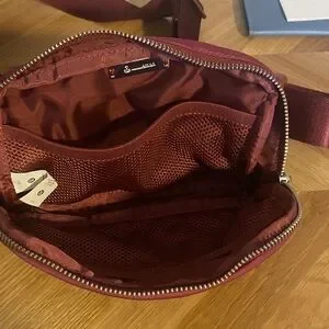 Chic and versatile belt bag. Ideal for hands-free convenience. Features a rich burgundy new. Basically brand new, used once or twice, no signs of wear or stains.