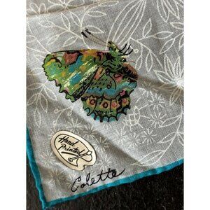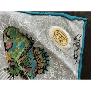 This is a women's vintage hand painted and signed cotton square scarf with butterflies - approximately 15"x15".