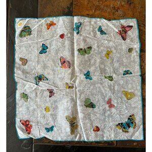 Vintage Hand Painted Signed Butterfly Scarf Japan 15"x15" Cotton