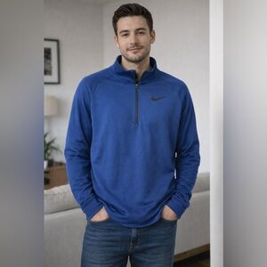 Nike Men's Royal Blue Quarter-Zip Jacket. Size-Large