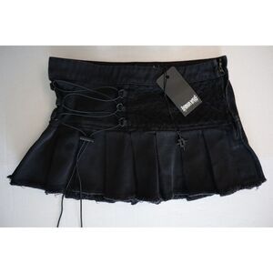 Darker Wavs x Dolls Kill ADW21240 Women's Sz XS Black Pleated Denim Mini Skirt