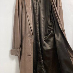 Vintage Jaqueline Ferrar long coat. Medium. Brown leather.
