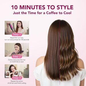 【ONE EASY CLAMP & VOLUMINOUS ALL DAY】This hair curler heats in 30 seconds and locks curls for up to 24-48 hours. The ergonomic grip design allows effortless one-handed control, while the clamp groove creates three voluminous waves at once (sets in 5-8s), easy handling for quick, precise styling. Beginner-friendly with one-clamp operation, achieve full curls in only 10 minutes,saving much of the styling time. Perfect for using at home, office or anywhere, ensuring stunning beach waves all day.
