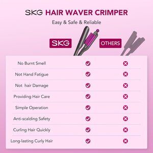 【5-TEMP ANTI-SCALD HAIR CRIMPER】The hair crimper waver offers 5 adjustable heat settings (250℉-410℉ ) with a PTC steady heat flow to protect hair from temp spike. The anti-scald curling wand for women designed with recessed buttons, LED heat indicators, and an insulated body to prevent burns. 50M negative Ions and Hydro-Ceramic coating enhances shine, smoothes cuticles, reduce hair frizz. Select suitable temp and easily get various hair types, achieving salon-quality curls and show your vibe.