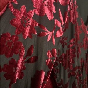 This stunning dress features a rich red floral velvet design, The luxurious fabric and elegant pattern make it a standout piece in any wardrobe. Tag was removed but it is a free the people piece.