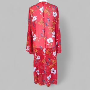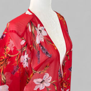Band of Gypsies Red Floral Sheer Cover Up Bell Sleeve Large