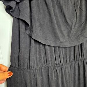 Asos Curve plus size US 20 black viscose jump suit. Off shoulder layered ruffle top, elastic waistband, high rise, flat front, wide leg.