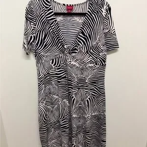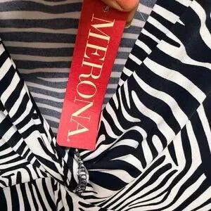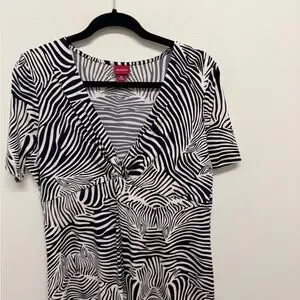 Chic zebra pattern top. Features a round neckline. Perfect for casual wear.