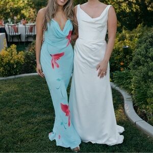 Worn once. Dress hemmed in the front and straps shortened. Straps could be let out again. I am 5’5”