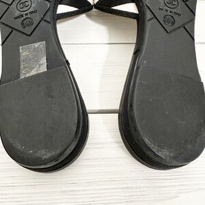 Chanel CC Logo Stripe Black and White Mules Slip On Sandals 39.5