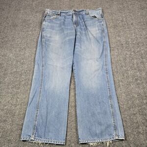 Wrangler Jeans Mens 40x32 Light Wash Relaxed Bootcut Denim Frayed Hem 38x30