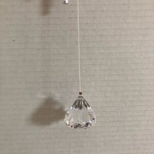Elegant clear angel with gold tone wings. Silver etched wind chimes in the middle with a crystal at the bottom. I believe this likely dates to the 80’s or so.