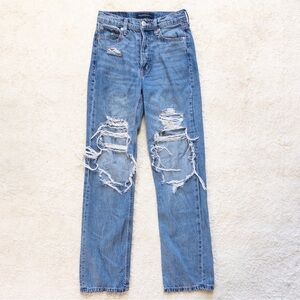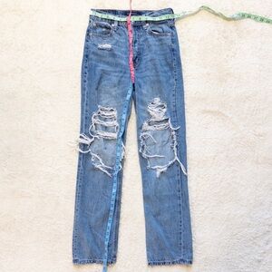 Aeropostale high rise 90’s baggy distressed blue medium wash denim jeans size 00, see pictures for measurements. In great condition. Always shipped same or next day. #distresseddenim #baggyjeans #aeropostale