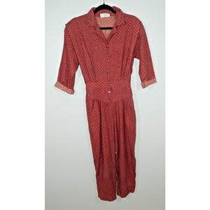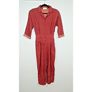 Angeles Jumpsuit Vintage 80s Size XS/S Red Brown Paisley Pockets California USA