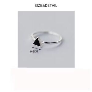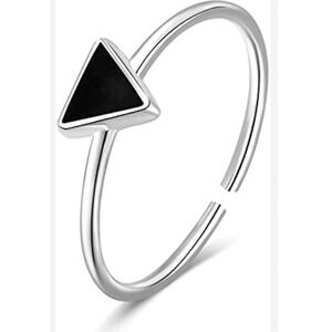 Brand New! Geometric allure meets modern minimalism in this sleek triangle ring. A bold statement piece, this ring features a striking black triangle set against a 925 sterling silver band. The adjustable design ensures a comfortable fit for any finger, making it perfect for stacking with other rings or wearing alone for a subtle touch of edgy elegance. Its minimalist aesthetic makes it a versatile accessory, ideal for adding a touch of sophistication to your everyday style. Wear it to elevate your office attire, add a chic accent to a casual weekend outfit, or bring a modern twist to an evening ensemble.