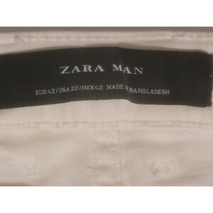 The Zara Man off white chino shorts in size 32 are a stylish and versatile addition to any man's wardrobe. Made from a comfortable cotton blend fabric with a light wash, these shorts feature a classic button-up front and a regular fit. The solid white color and chino style make them perfect for casual occasions, travel, or outdoor activities during the summer and spring seasons. With a 5-pocket design and a flat front, these shorts offer both style and functionality for the modern man.