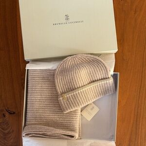NEW / BRUNELLO CUCINELLI 100% Cashmere Hat & Scarf / Beige & Gold